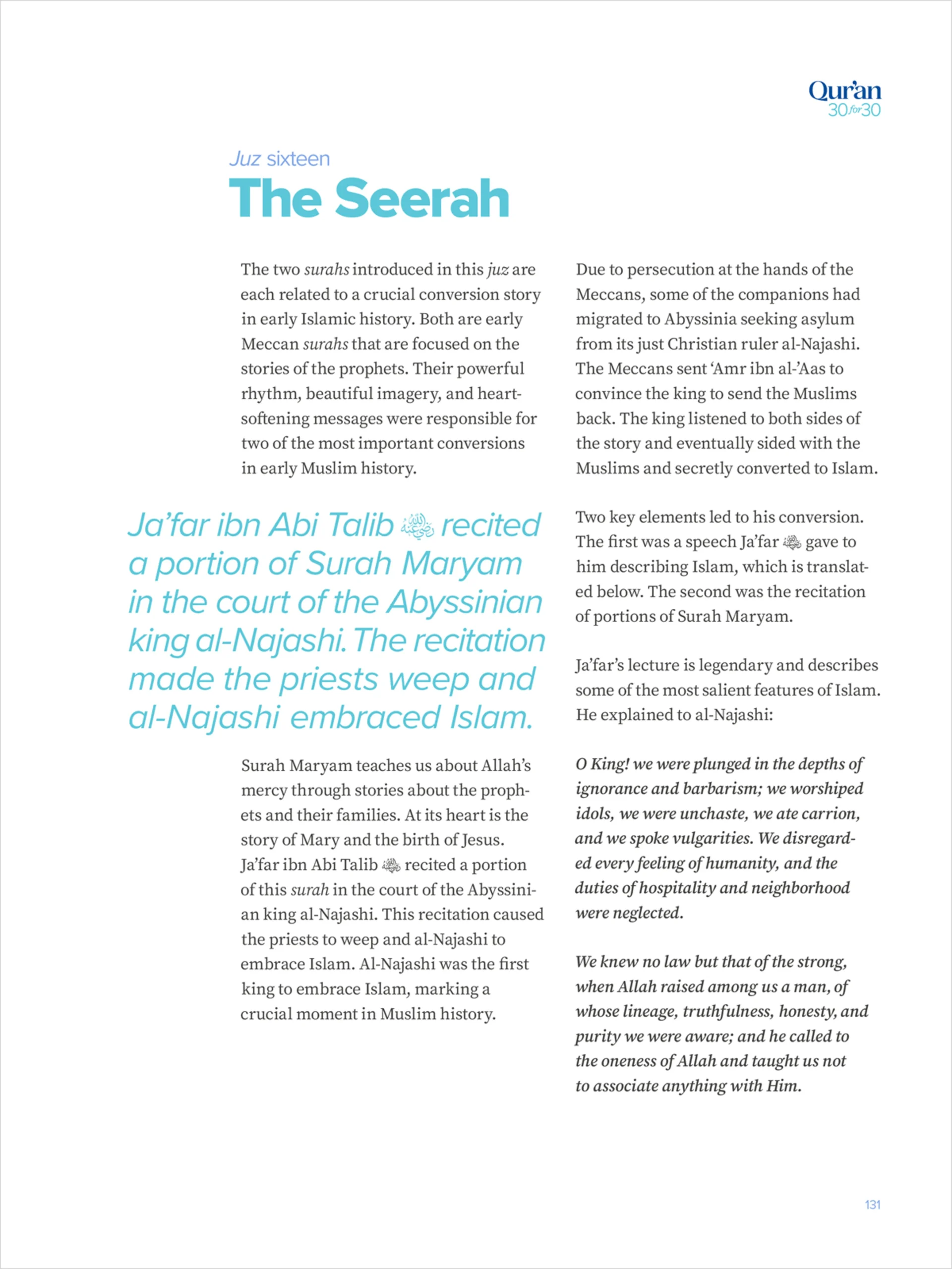 This book compiles many of the key insights discussed in the first 4 seasons of the Qur’an 30 for 30 video series and presents them in an organized and easy to read way. Explore how some of the most important recurring themes of the Qur’an — the Seerah of the Prophet ﷺ, Judgement Day, and the Qur’anic worldview — come together in each juz to provide us guidance for every aspect of life.